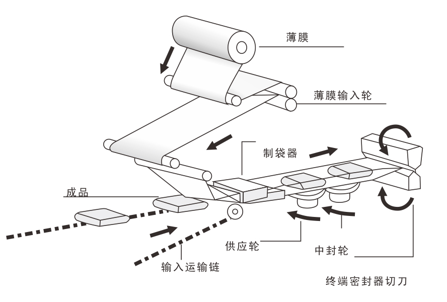 适用于方形、球形、圆片、圆柱形、钮扣形、椭圆形、各种异形糖果及固体物块的高速枕式包装。