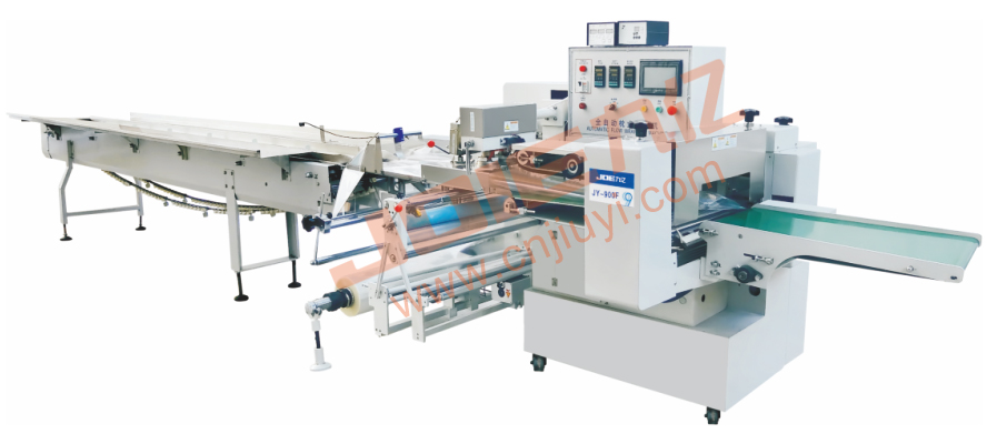 可选配各种附加装置,如:自动打码、贴标、打孔、插脚、充氮气、排空气、酒精喷射、自动接膜、自动下料、无料自动停机等。