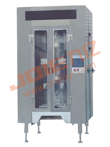 袋装水自动灌装机JEV-7500是袋装水生产线主机设备。该机由送膜进膜系统、牵引机构、热封切断装置、灌装机构等,均采用不锈钢材料精制而成,符合食品生产要求。各道工艺由PIC控制中心通过触摸屏按设计要求来切确完成。整机具有薄膜跑偏自动调整装置,薄膜长度计量调整装置、多道去菌处理、灌装精度高、封口 卫生牢固。采用电脑程序人 机界面,操作方便可靠。是袋装水生产的理想设备。